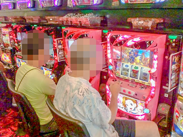 20円パチスロを見渡すと、「押忍!番長3」や「パチスロ北斗の拳 転生の章」、「バジリスク~甲賀忍法帖~絆」で華やかな光景が広がっており、プレイヤーたちの笑顔を見て、納得の遊技ができていることがうかがえた。