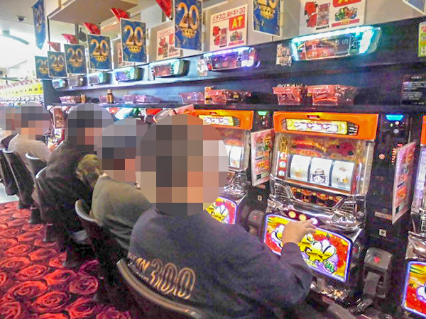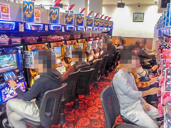開店直後は20円パチスロが人気。「バジリスク~甲賀忍法帖~絆」や「ミリオンゴッド-神々の凱旋-」を中心に、次々と席が埋まっていった。