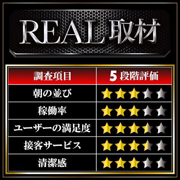 店内は隅々まで清潔に保たれており、遊技台まわりやカウンター周辺などもしっかり清掃が行き届いているので、気持ち良く過ごすことができる。
