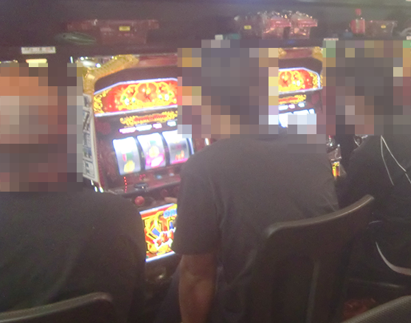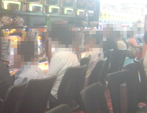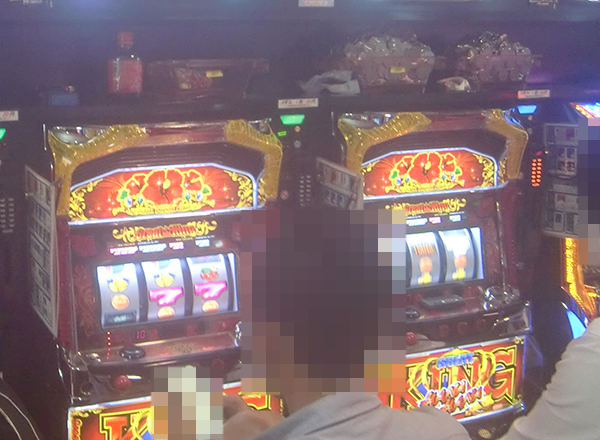 設置されている5台がフル稼働であり、すべての台で花のような笑顔を目にしている。イキイキとレバーを叩くプレイヤーが並び、シマだけでなくパチスロコーナー全体を通しても、ひときわ明るいムードに包まれていた。
