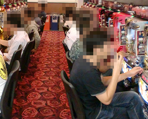 各所に遊技を満喫するプレイヤーがいる店内で、ひときわにぎわっていたのはパチスロコーナー。