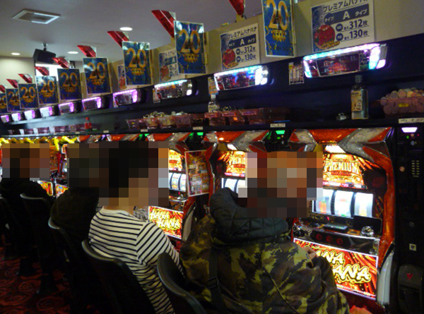 ホールに到着したのは夕方頃。店内ではたくさんのプレイヤーが遊技をおこなっており、パチンコとパチスロの両方から盛り上がりが感じられた。