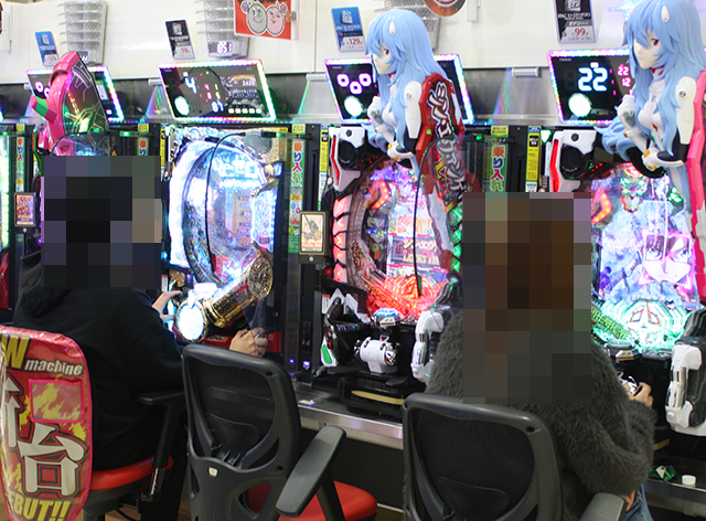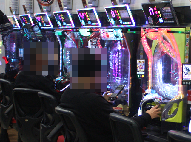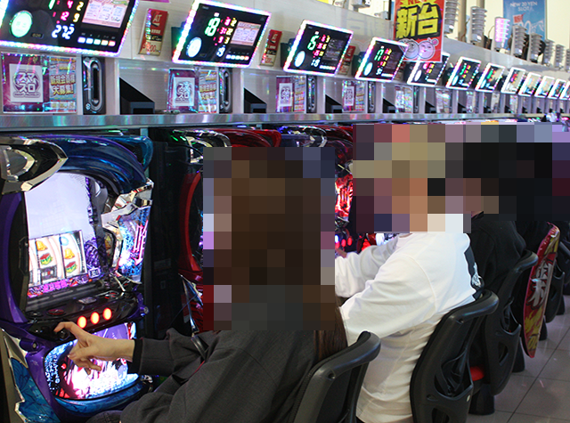 ツワモノと呼ぶにふさわしいプレイヤーを探すべく、まずはパチスロコーナーからまわっていった。