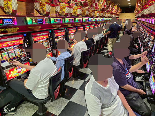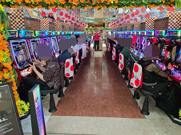 同店は6月頭にリニューアルしたばかりで、スマスロが大幅増台されている。早速取材を進めると、あちこちでプレイヤーの笑顔が見られた。