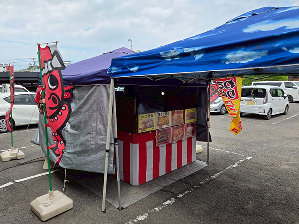 取材時は駐車場にたこ焼きの屋台が設けられており、プレイヤーたちの小腹を満たしていた。