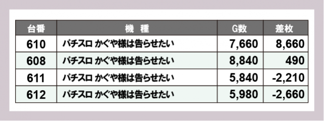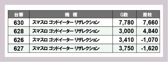 ※差枚数順に掲載しています