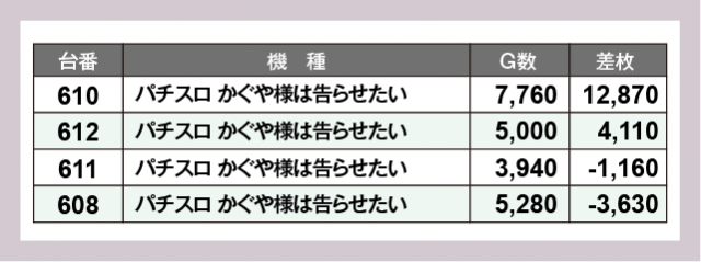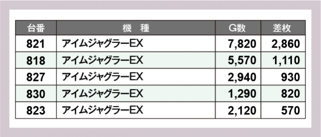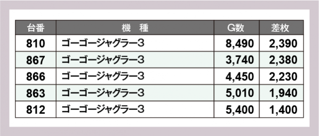 ※差枚数順に掲載しています