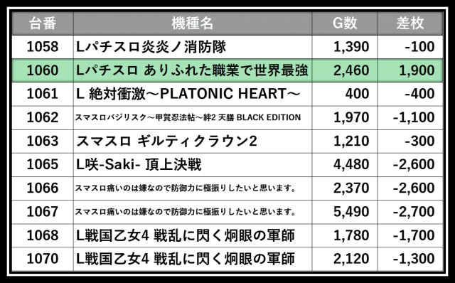 その結果の中から、ぱちタウンが注目すべきポイントを厳選してユーザーにお届け!プレイヤーが楽しんだ一日を下記データにて振り返ってみて欲しい。