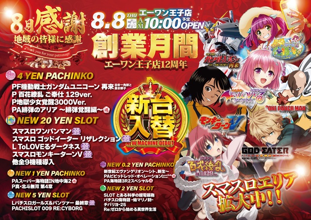 【エーワン王子店】明日8日(木)★新台入替★朝10時OPEN