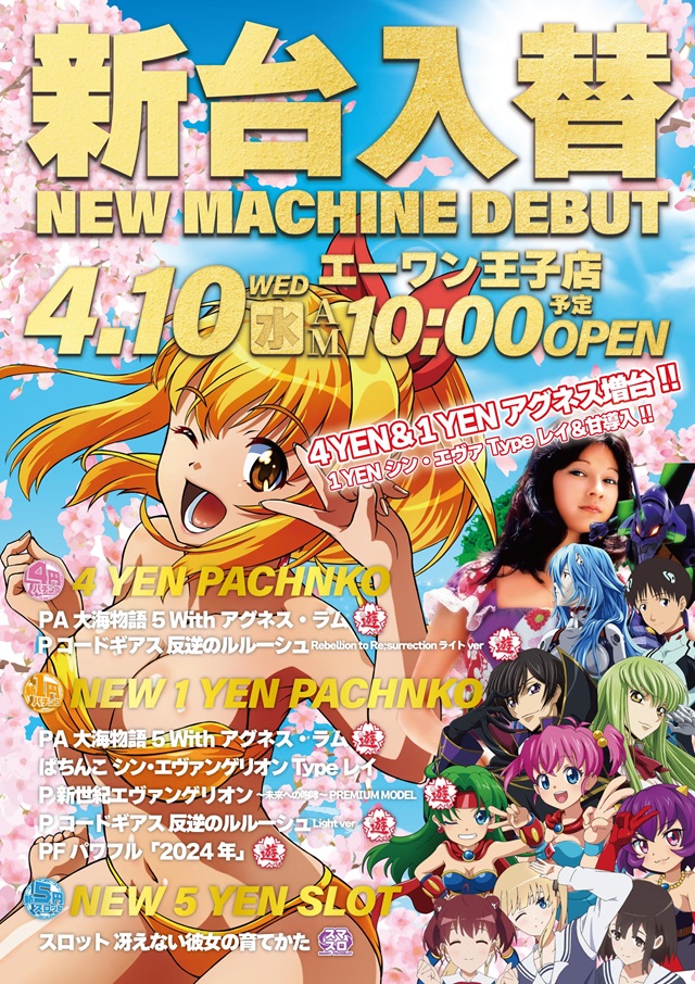 【エーワン王子店】明日25日(木)☆新台入替☆朝10時開店!
