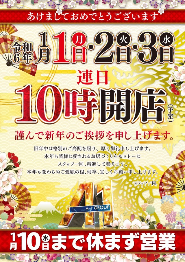 2024年◆27年目始動◆お正月からフル営業!朝10時開店!