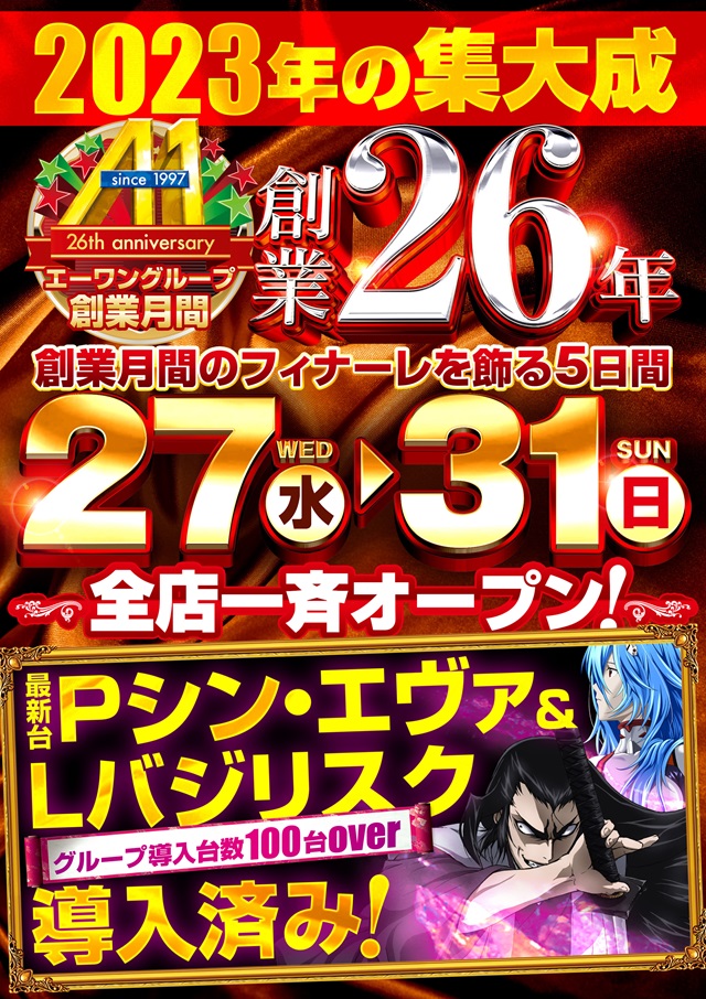 新台入替の前日がお休みとなります♪ |