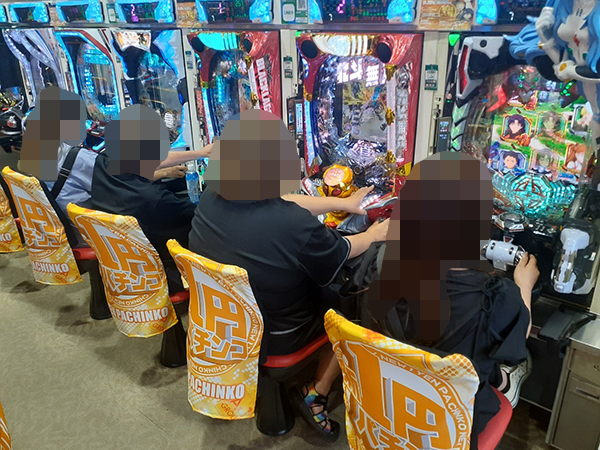 1.111円・0.25円などの低貸し玉パチンコも高稼働。「ぱちんこ シン・エヴァンゲリオン Type レイ」などの人気機種を中心に盛り上がりが大きく、シマ全体にプレイヤーの熱気が感じられた。