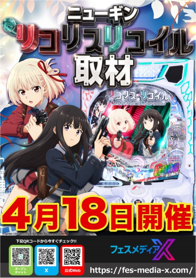 ✨4/18(土)10時開店✨スロパチ取材&リコリス取材開催✨