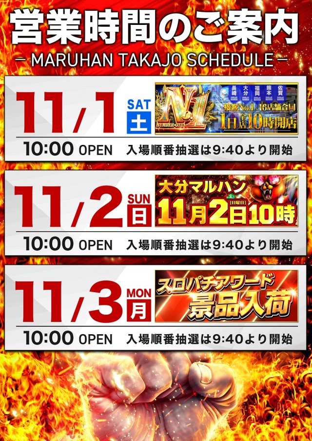 ✨九州マルハン16店舗合同✨11/1(土)10時開店✨
