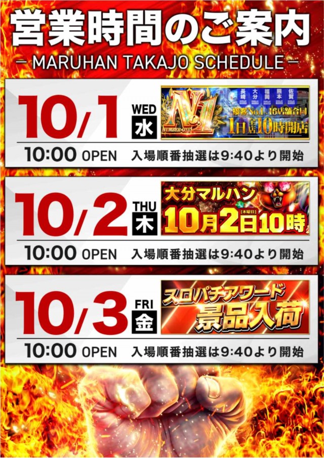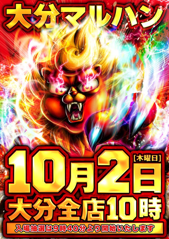 ✨10月1日(水)✨九州マルハン16店舗合同10時オープン✨