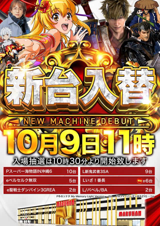 ✨10月9日(木)新台入替11時開店✨ぱちタウン取材開催!