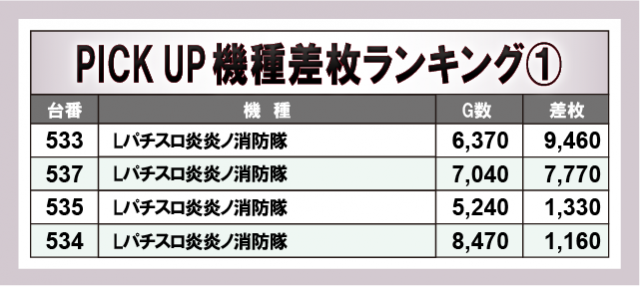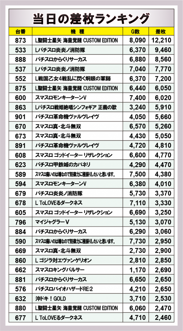 ※差枚数順に掲載しています。