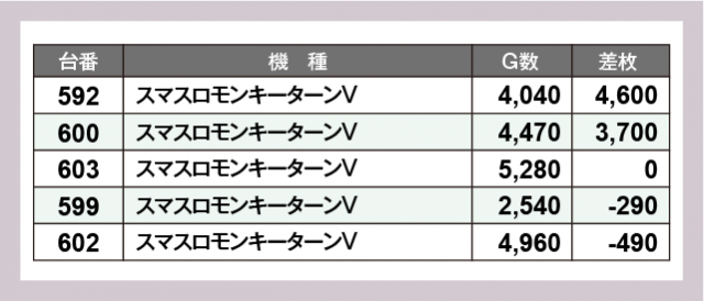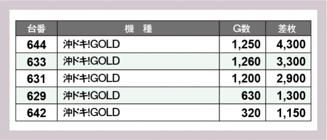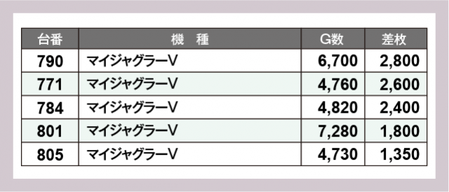 ※差枚数順に掲載しています