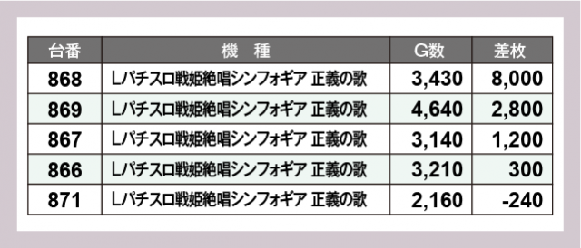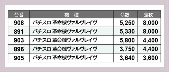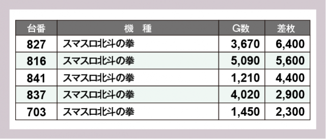 ※差枚数順に掲載しています