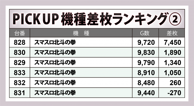 さらに『スマスロ北斗の拳』に+7,500枚弱、『ゴーゴージャグラー3』に+5,200枚超、『アイムジャグラーEX』に+3,500枚弱、『マイジャグラーⅤ』では+2,000枚超が4台と、各機種が潜在能力を見事に解放した。