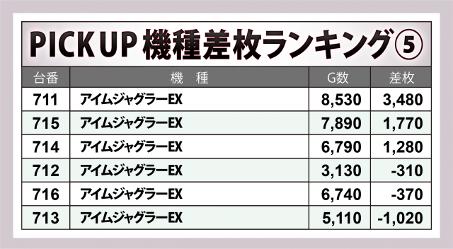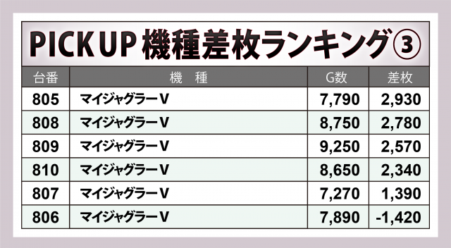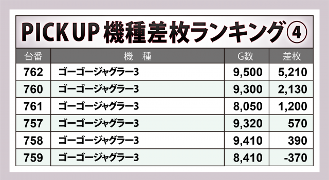 ここからは勝率の高さや突出した差枚数が際立った5つのマシンをピックアップ。