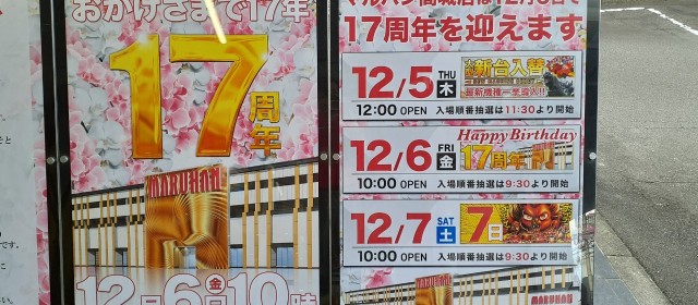 前月11月には同じ月として初めて「英雄のリアル」が2回行われた「マルハン高城店」。当記事では12月上旬実施の模様をお送りしよう。
