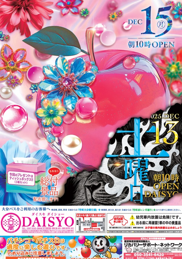 12月27日【土】リニューアル3日目 朝10時開店!!