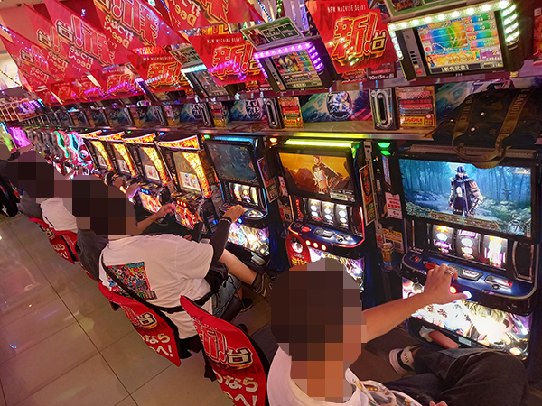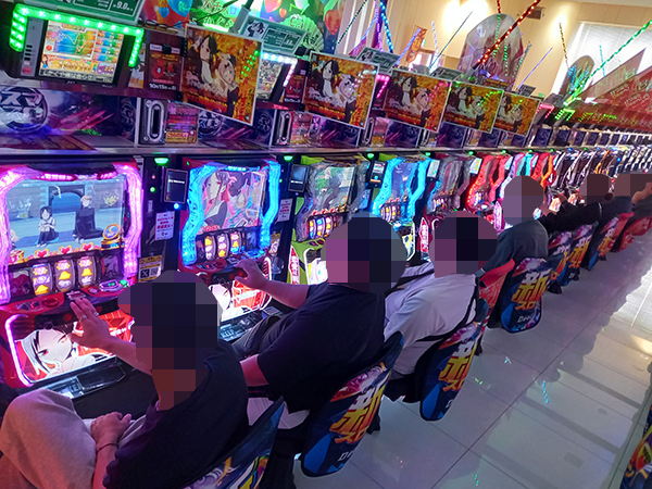 1000円/200枚パチスロの支持も厚く、様々な機種で楽しそうにレバーを叩くプレイヤーが見られた。