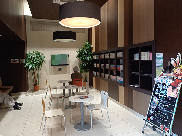 レストスペースにはテレビ・漫画本が用意されており、プレイヤーからの評価も高いようだ。