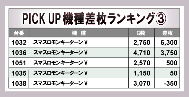 『スマスロモンキーターンV』『ジャグラー』シリーズといった看板機種から優秀台が存在し、ホール中で大いに盛り上がりを見せていた。いずれも高い実力を発揮していたことが確認でき、各所にチャンスは隠れていたようだ!