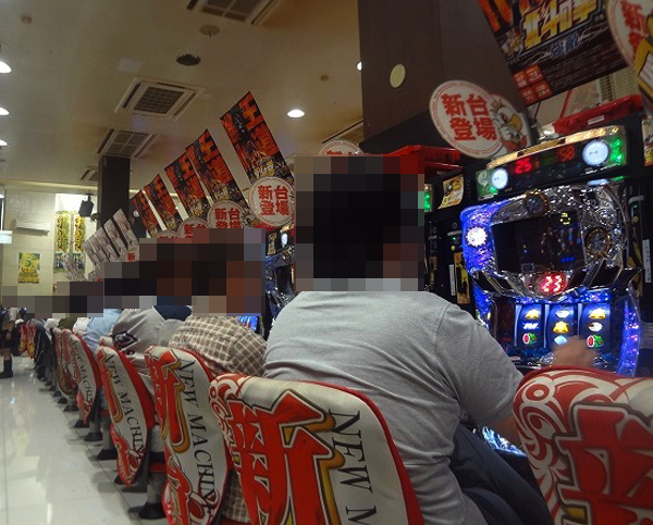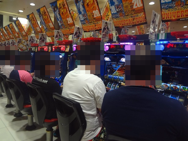 「パチスロゴッドイーター」や「押忍!サラリーマン番長」、ジャグラーシリーズも好評でほぼ空き台はナシ。