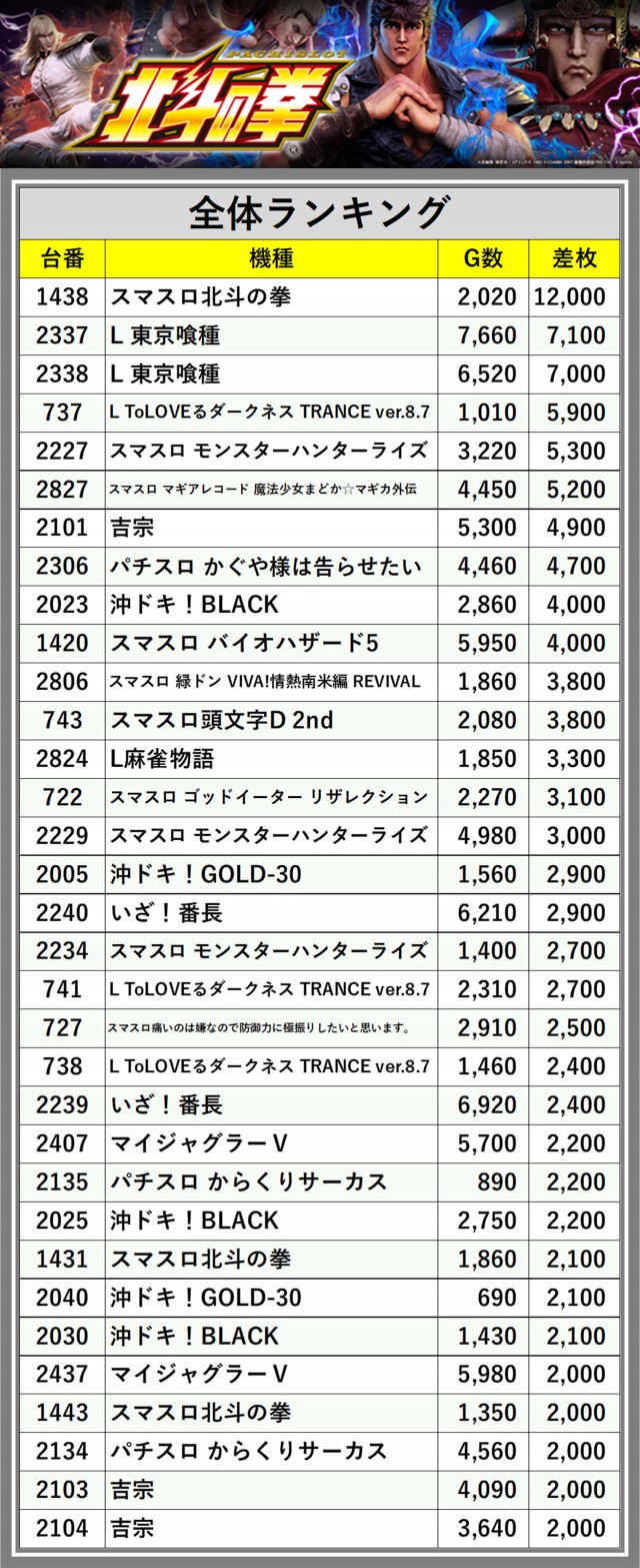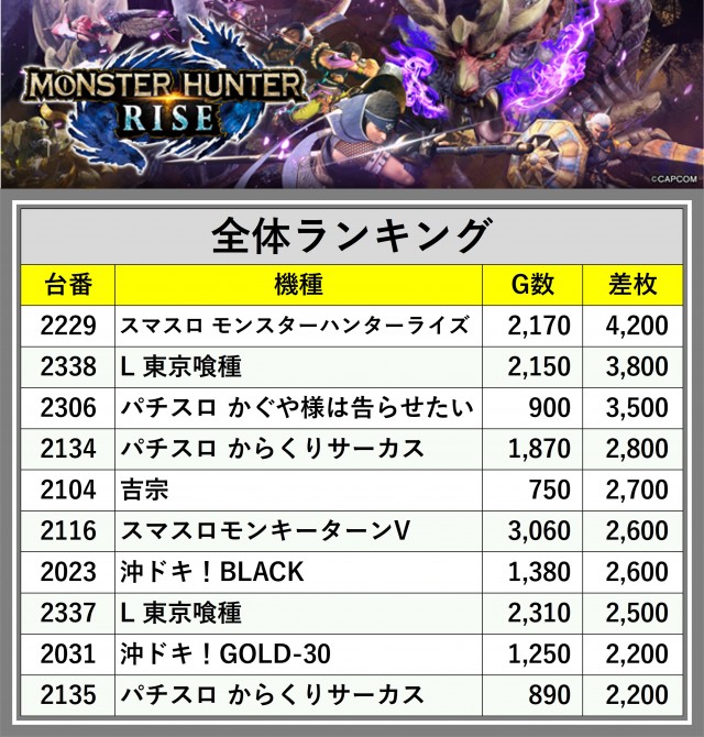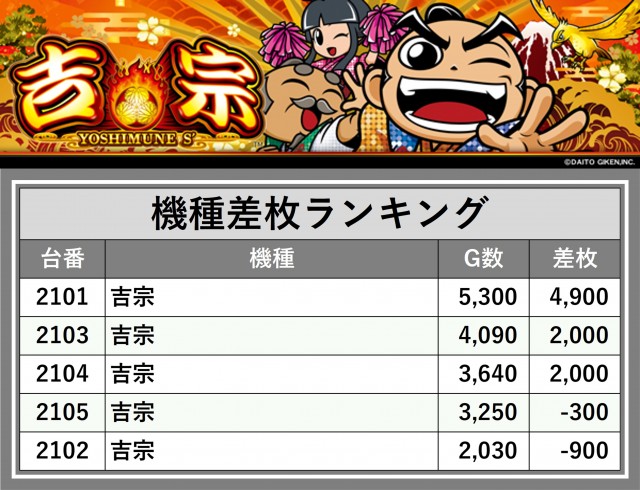 厳選された取材対象機種をはじめ、その他スロット全体から好記録が飛び出した!プレイヤーが楽しんだ1日を下記データにて振り返ってみて欲しい。