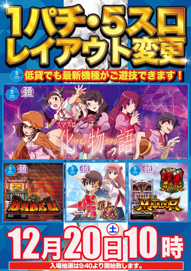 🌈12月20日㈯ 1パチ・5スロレイアウト変更 10時開店🌈
