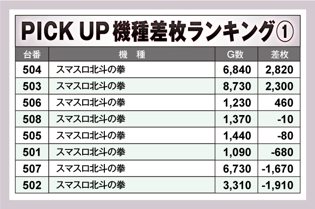 ※差枚数順に掲載しています。