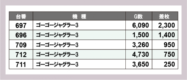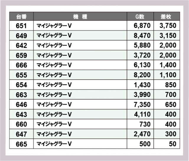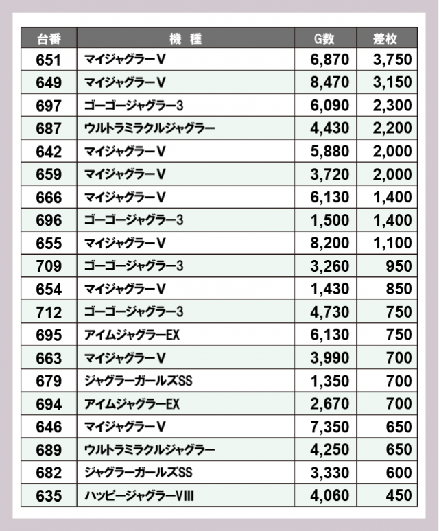 ジャグラー差枚ランキング