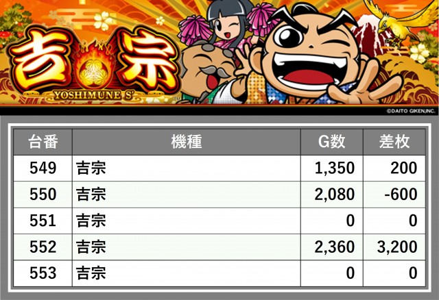 厳選された取材対象機種をはじめ、その他スロット全体から好記録が飛び出した!プレイヤーが楽しんだ1日を下記データにて振り返ってみて欲しい。
