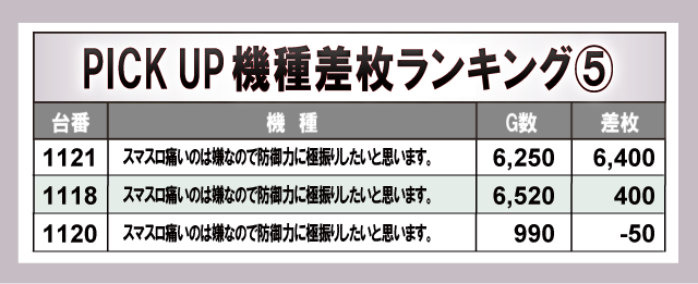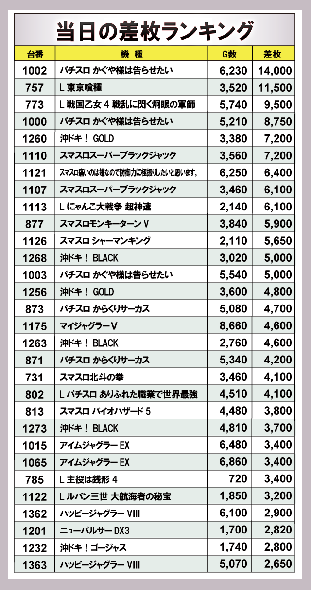 ※差枚数順に掲載しています。