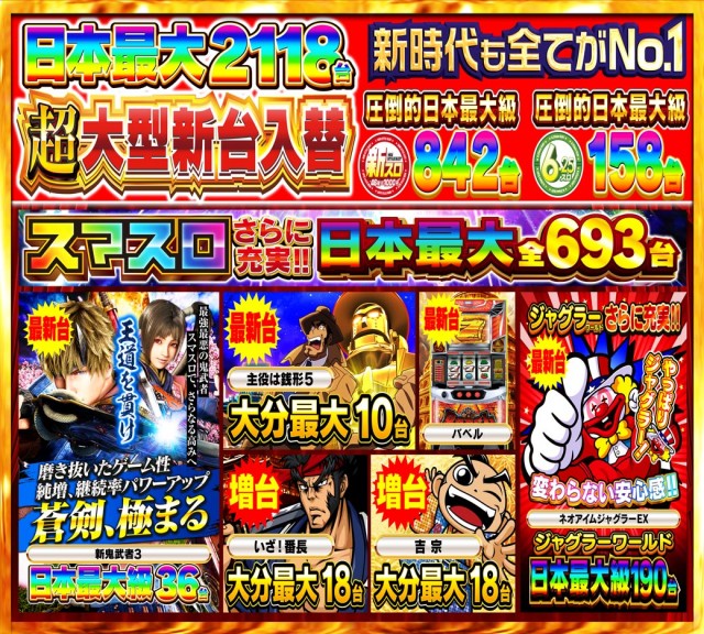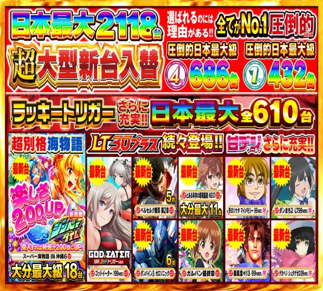 日本最大2118台!!全館朝10時開店!!