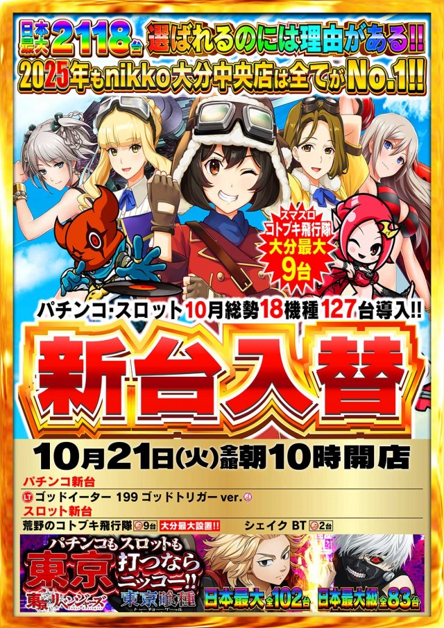 nikko 大分中央店は遊技台数2118台を誇る