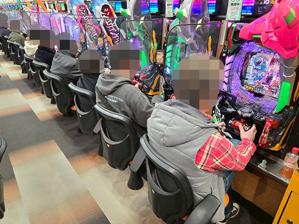 14時ごろの1円パチンコを見渡すと、「新世紀エヴァンゲリオン〜未来への咆哮〜」をはじめとするエヴァシリーズでプレイヤーたちが華麗なパフォーマンスを披露。それぞれ納得の遊技ができていたことを確認している。