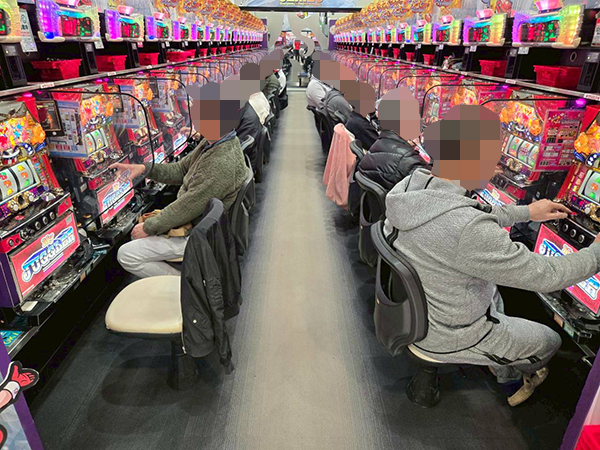 「マイジャグラーⅤ」や「ネオアイムジャグラーEX」などのジャグラーシリーズでは理想的な展開を迎えたプレイヤーが見られ、実に微笑ましい光景が広がっていた。