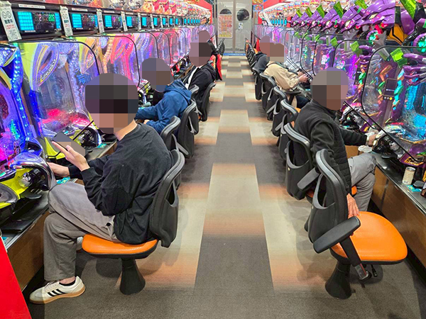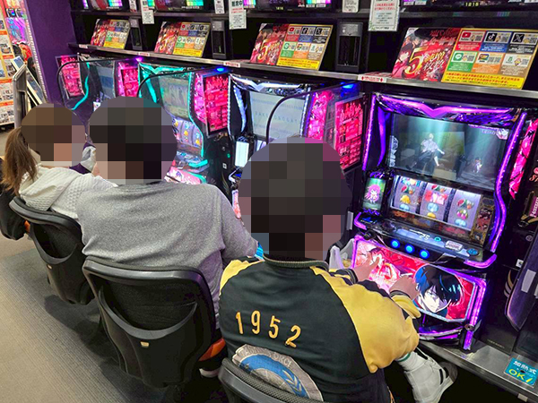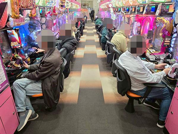 取材時は多くのプレイヤーが来店。パチンコ・パチスロともに、様々な機種が支持を得ていた。