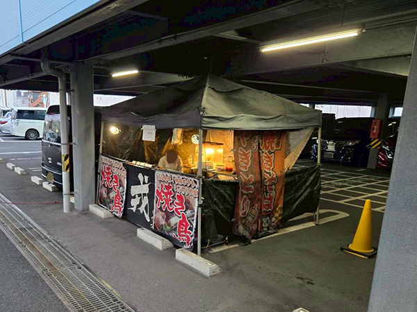 取材時は駐車場に焼き鳥の屋台が設けられており、プレイヤーたちの小腹を満たしていた。