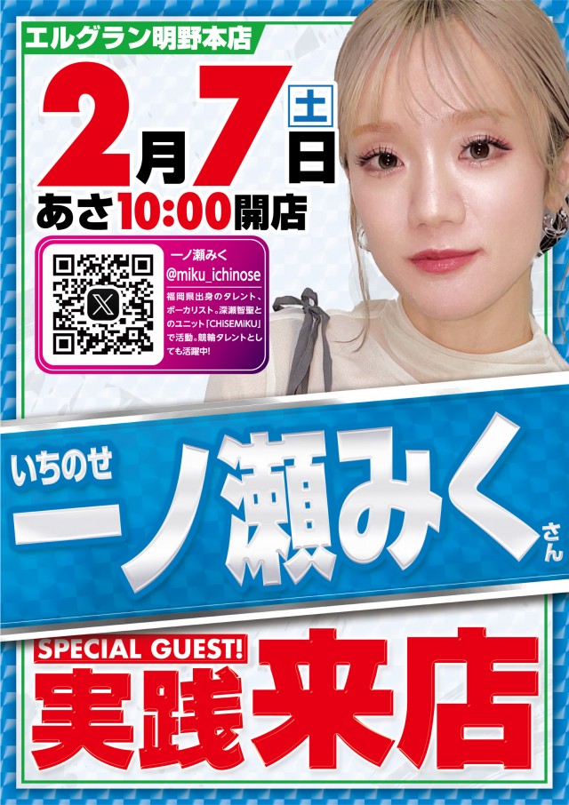 本日2月7日 【一之瀬みく】さん来店 朝10時開店