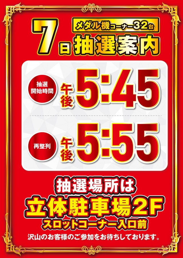 このあと15時よりスロットコーナー開放 抽選14時45分開始