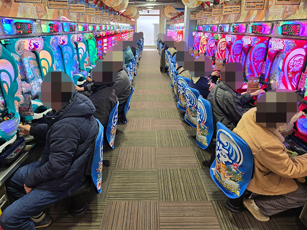 「沖ドキ!ゴージャス」や「マイジャグラーⅤ」、「スマスロスーパーブラックジャック」では、機種の魅力を堪能するプレイヤーを確認。シマ中に明るい雰囲気が広がっていた。