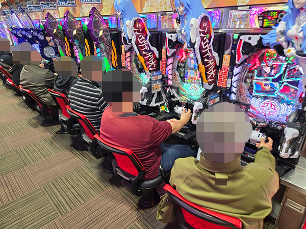 16時半ごろの1.1円パチンコをチェックすると「PA大海物語5 Withアグネス・ラム」といった海物語シリーズや「ぱちんこ シン・エヴァンゲリオン Type レイ」、「新世紀エヴァンゲリオン〜未来への咆哮〜」が好評の様子。プレイヤーの満足そうな表情から、充実した時間を過ごしていたことがうかがえる。