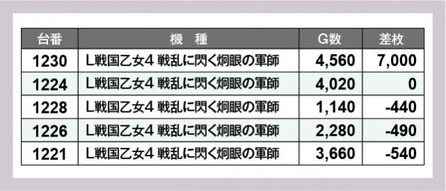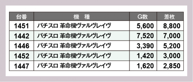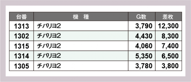 ※差枚数順に掲載しています