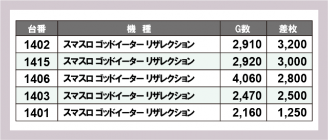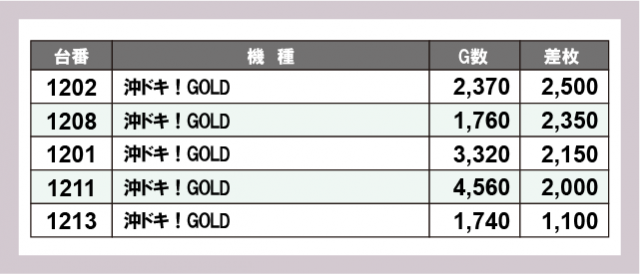 ※差枚数順に掲載しています